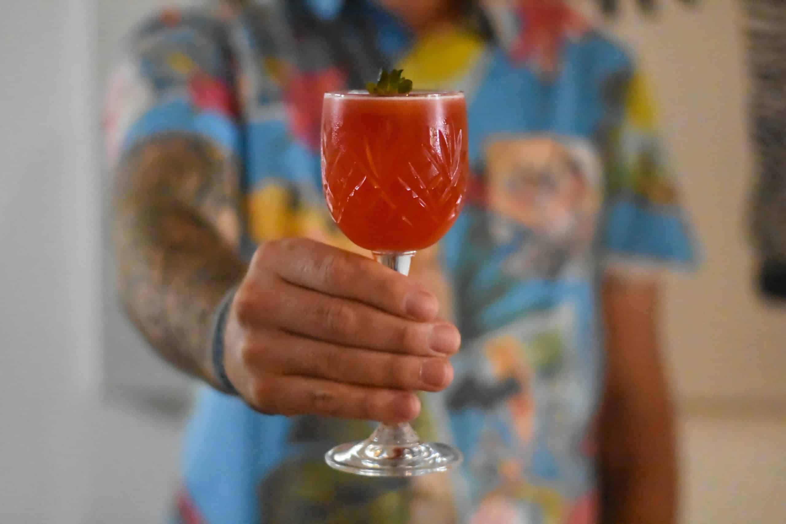 “El Viento, or ‘The Wind’ in Spanish, explores the fun and frivolity of drinks that dominated the noughties (1990’s). It breathes new life into drinking in a modern context that is increasingly defined by seriousness and complexity. Utilising modern processes and on trend ingredients, the depth of flavor matches today’s refined palate. Cold pressed strawberries combine with coconut oil to deliver an incredibly fresh drink with a delightful mouth-feel and a resonance to a carefree place in time.”