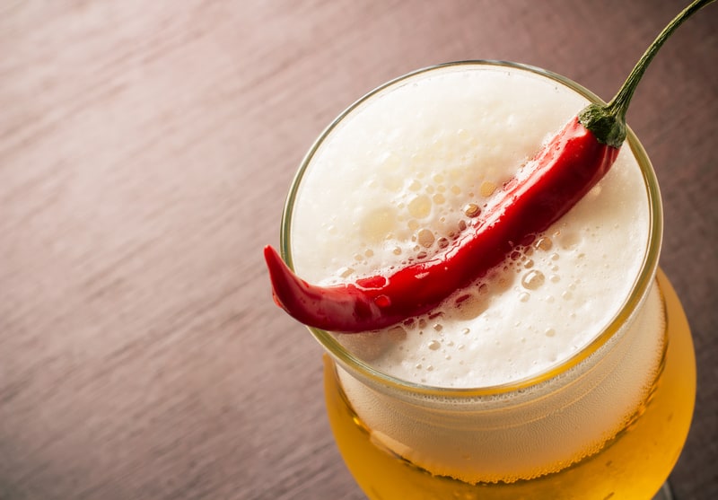 Fresh chili peppers can highlight or serve as a contrast to any beer you’re brewing. When to add the chili peppers can be as big a decision as what kind of peppers to use. The earlier you add chili peppers, the more their aroma and flavor will be toned down by the hops or malts. Habanero chilis pair well with Citra hops, while the mildness of green chilis goes with sweeter malts. Eckraus explains, you can add your chili peppers to the boiling stage, the primary fermentation batch, the secondary fermentation batch, or directly to the end product. Each step increases the presence (heat, flavor, and aroma) of the chilis.