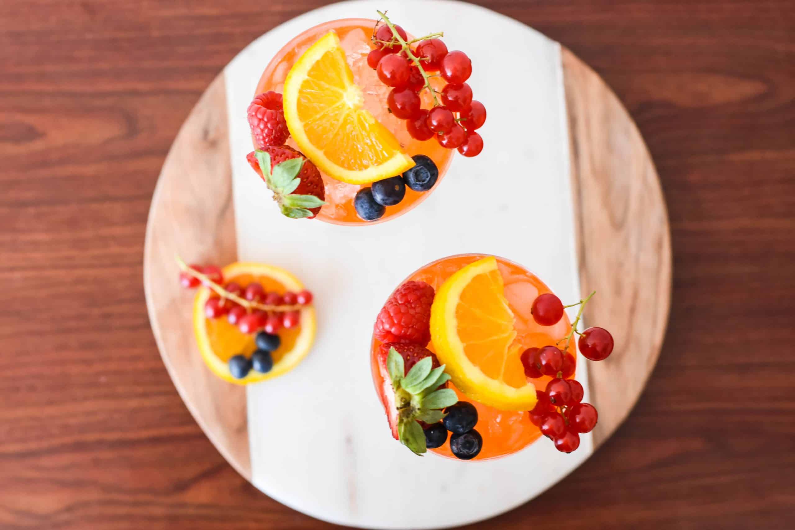 - Garnish with seasonal berries and orange slice