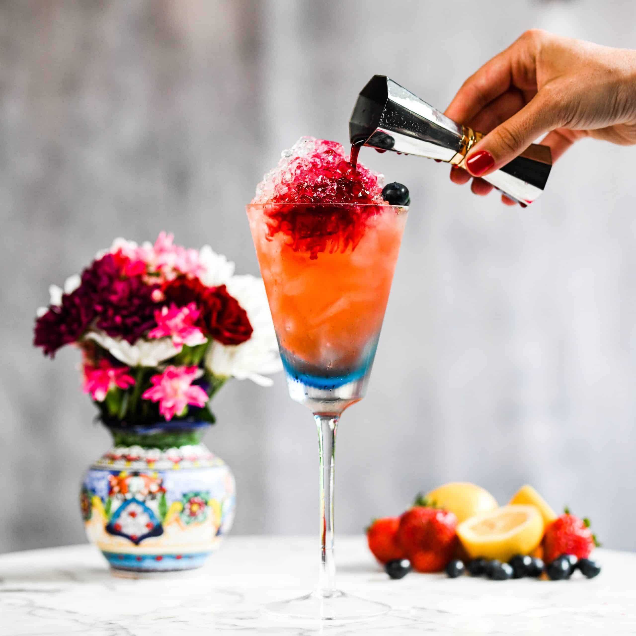 There are 2 primary components you can work with to balance any cocktail, or any drink for that matter, and they are citrus and sugar. Whenever I’m looking to make a drink that isn’t straight alcohol I like stray from just adding simple syrup and find different syrups that add to the overall flavor of the cocktail. Usually I will just make something from the ingredients I have and sometimes I grab one of the Monin Syrups I have on my back bar. Once I have that flavor component figured out I will usually go with a subtle lime juice or punchier lemon juice depending on what I need. Then again, sometimes a different citrus component can make all the difference in the end product and for this cocktail I found the additional flavor from the grapefruit really worked well with the blueberry syrup. I wanted to go straight grapefruit juice but the cocktail called for a little more “oomph” so I instead went with a 50/50 blend with lemon juice to add the extra citrus mouth feel. Finally for a clean, fresh berry hit and a little texture, I threw in some chopped strawberries, and voila, a delicious, balanced cocktail for all to enjoy!
