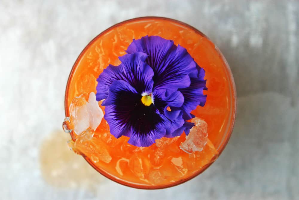 - In a large glass combine gin, carrot/orange juice, lemon juice, and orange blossom water