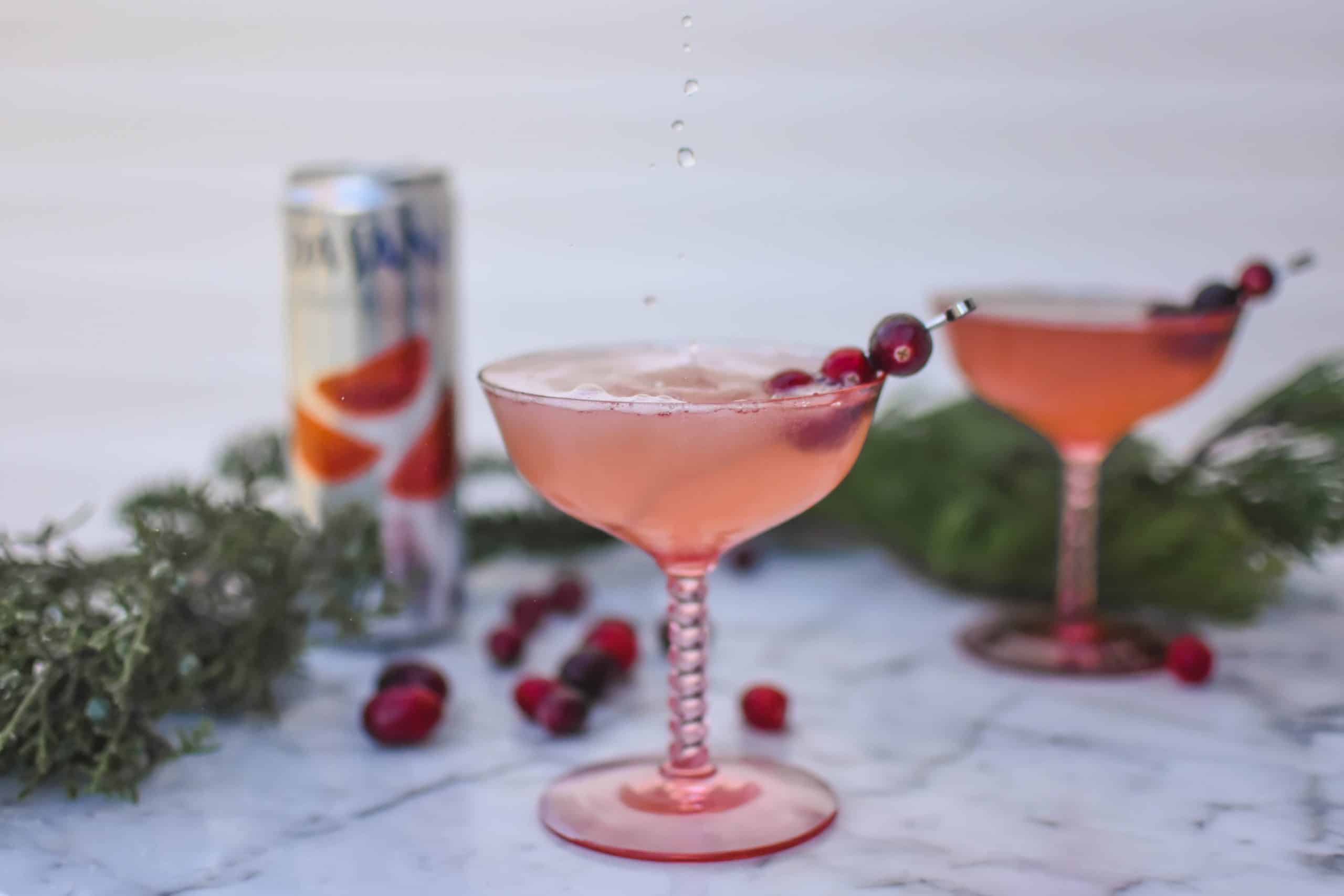 That’s why I created this Fizzy Bee’s Knees, it is a delicious spin on the classic cocktail but I swapped out the lemon juice for cranberry juice to make it a little more seasonal. I also had some Dasani Blood Orange in the fridge and thought it would really work well with the gin and honey as it adds a little hint of flavor to the cocktail and the effervescent bubbles really make it pop.