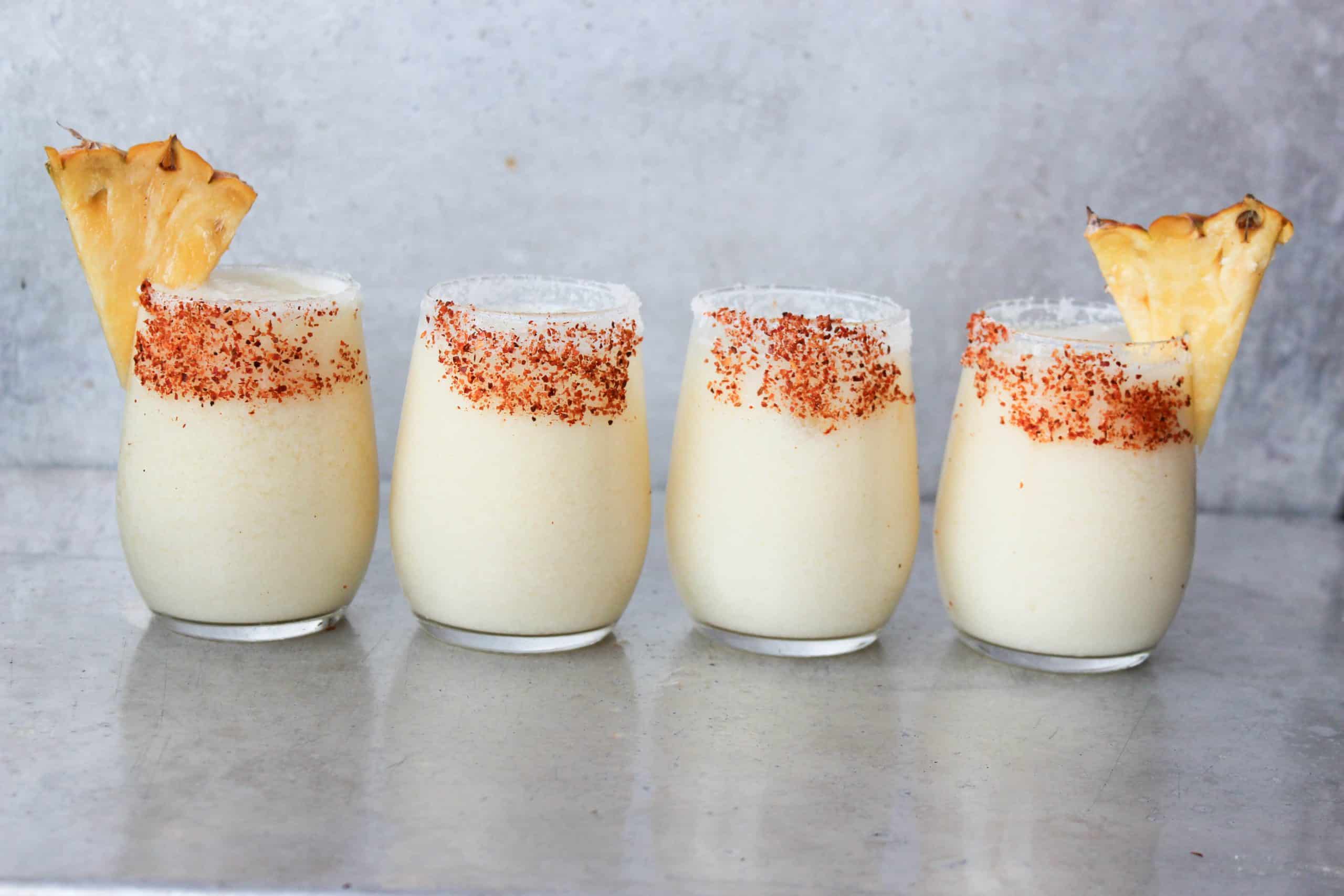 To start I don’t really love sweet cocktails but today I have also added a spicy component to balance out the pineapple juice as well as coconut to balance the heat. Meet the frozen spicy pineapple and coconut daiquiri. I usually prefer daiquiris on the rocks but this one is so good frozen with chucks of pineapple and creaminess of the coconut present itself almost like a spiked smoothie. Are you looking for a fun and easy drink? Try this spicy pineapple and coconut daiquiri tonight!