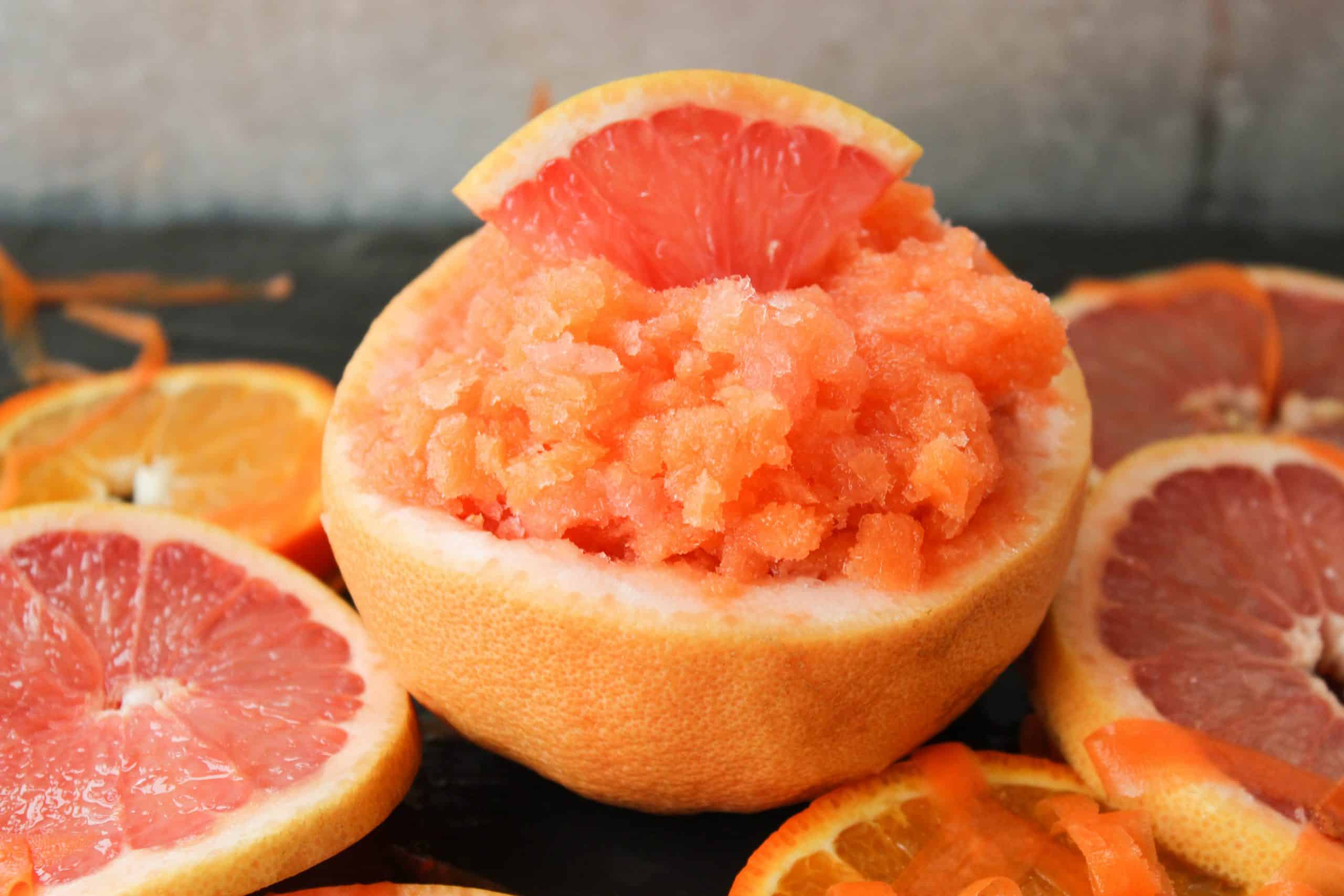 - Place ice mixture into hallowed out grapefruits and garnish with grapefruit slices.