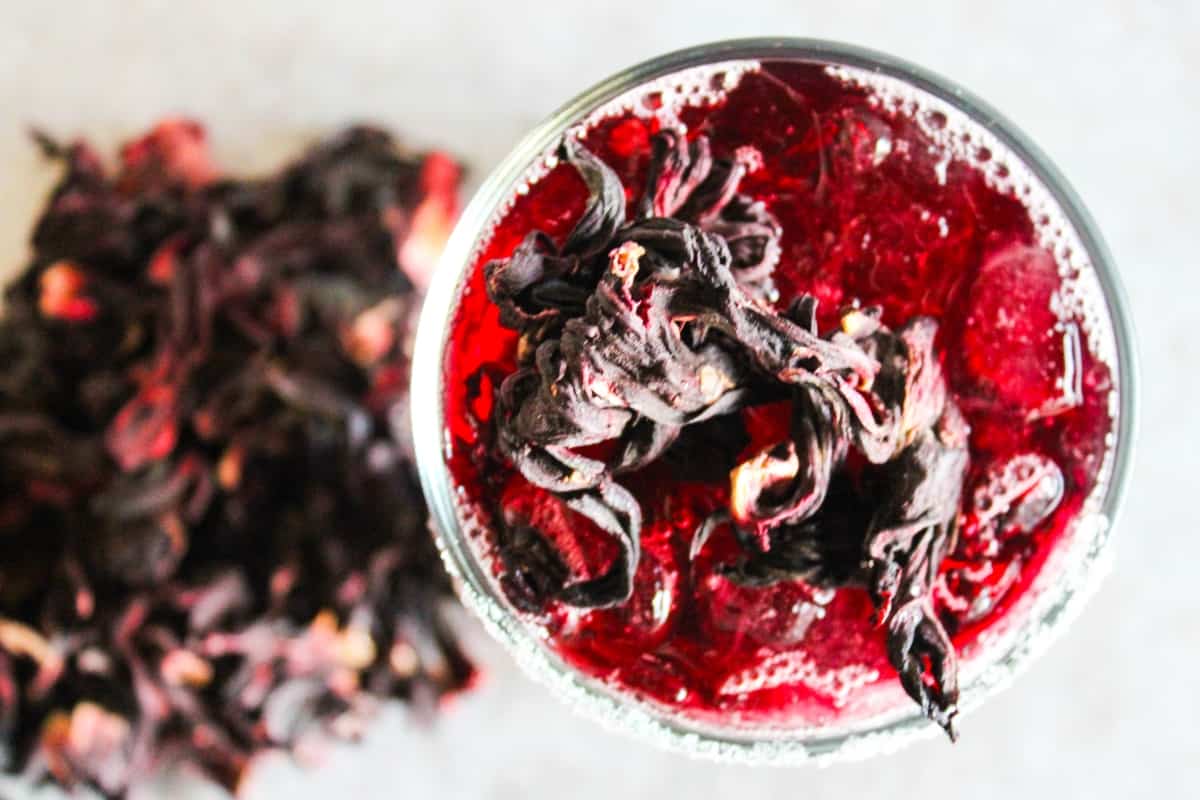 - 1/2 ounce of agave nectar or hibiscus simple syrup