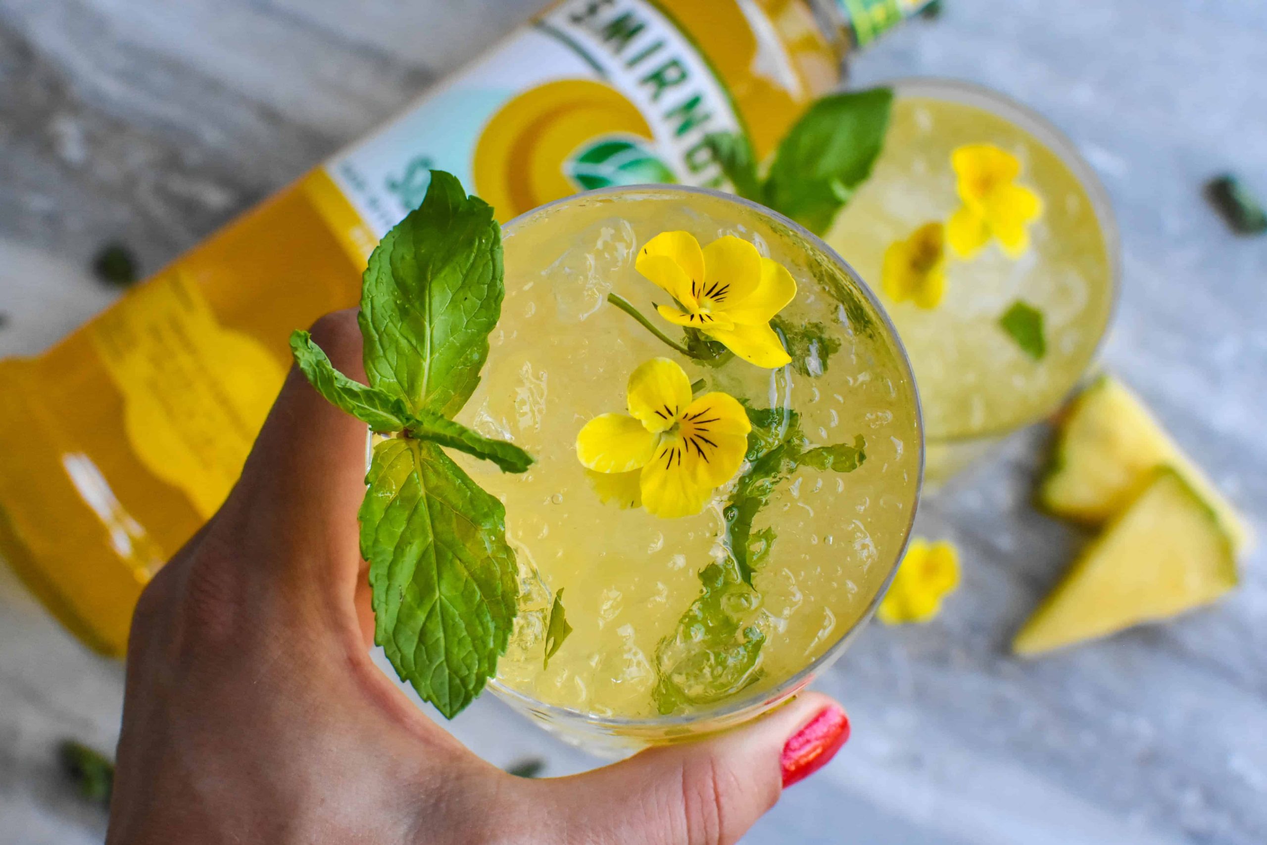 Smirnoff Sourced is perfect if you’re on the hunt for a new summer cocktail. After some quick research we found that Smirnoff is now directly infusing their vodka with fresh fruit juices like ruby red grapefruit, cranberry, apple and our favorite pineapple. We wanted something that would be perfect for sipping by the pool so we took a bottle of the Smirnoff Sourced Pineapple home and started mixing up fresh cocktails. It didn’t take long before we were poolside sipping on these Minty Pineapple Caipiroskas. With the fresh pineapple juice already in the vodka this cocktail is so simple to put together and so delicious that you may need to get a few bottles if you have friends over because you can sip these all day and night.
