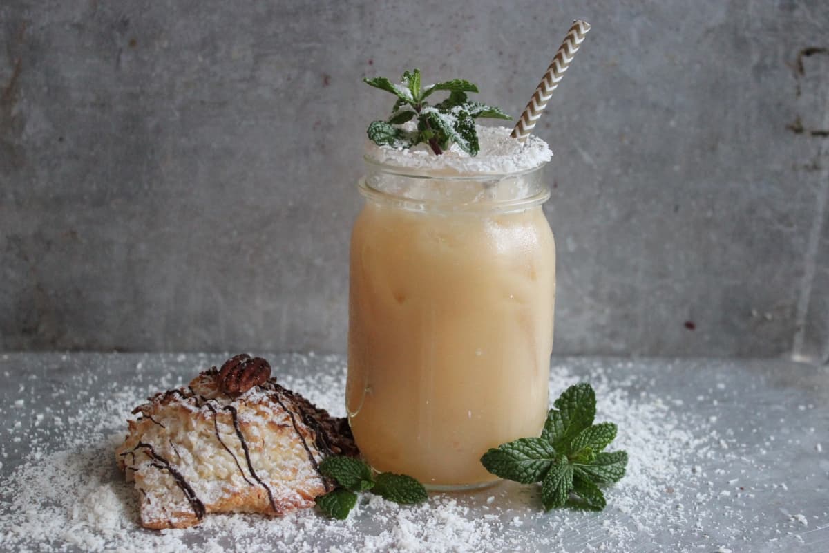 Today I am pairing one of my favorite flavors, which is coconut with rum! I have also made pecan simple syrup to fancy this cocktail up with festive flavor. The best part of this cocktail is the side dessert; the coconut macaroon. Have your own sweet happy hour and pair your favorite cocktail with your favorite cookie!