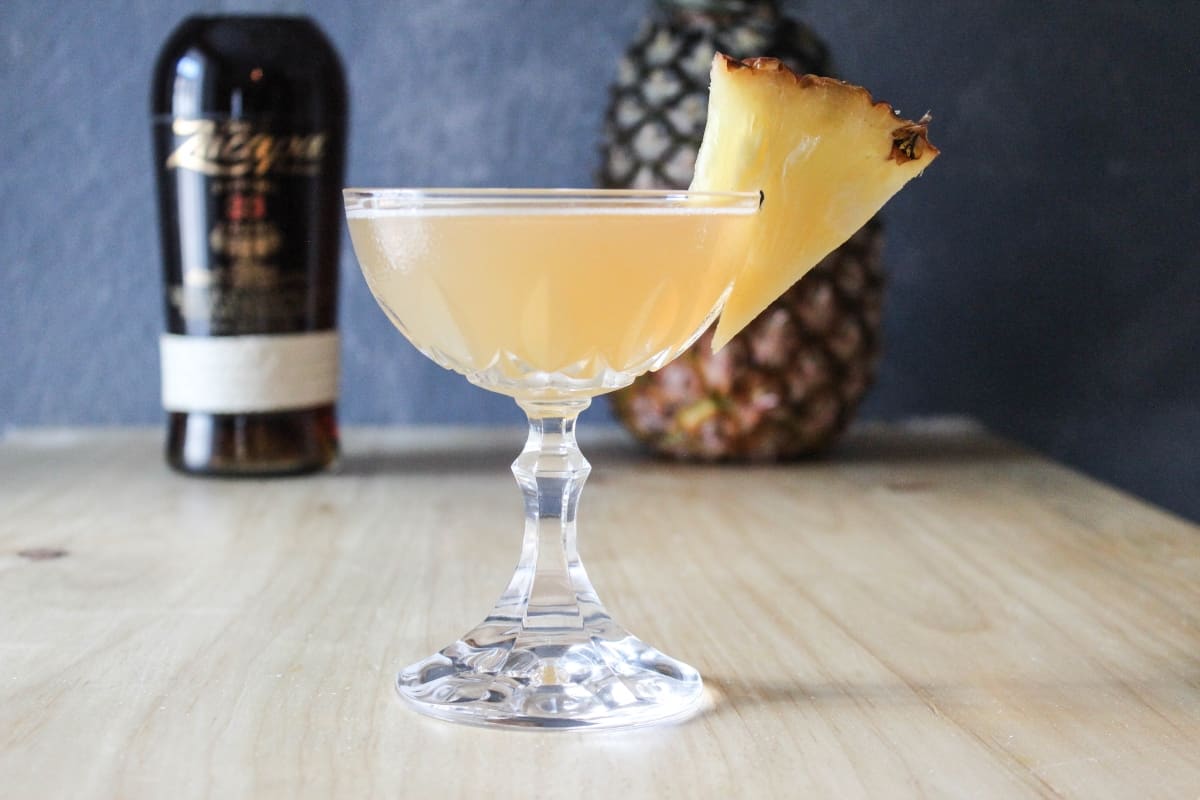 Today a special day for me and I am sharing a daiquiri that will transport you to the beach. This beach has pineapples everywhere and a bar that is shaking up very delicious cocktail treats. This sounds too good to be true but you can escape by making this pineapple daiquiri at home. I used Zacapa Rum, pineapple juice, lime juice, and a brown sugar syrup. This recipe is so simple if you don’t want to make the sugar syrup you can always substitute agave nectar. I then garnished with a fresh pineapple slice. I then relaxed in the dark winter night and had visions of warm and sunny destination.