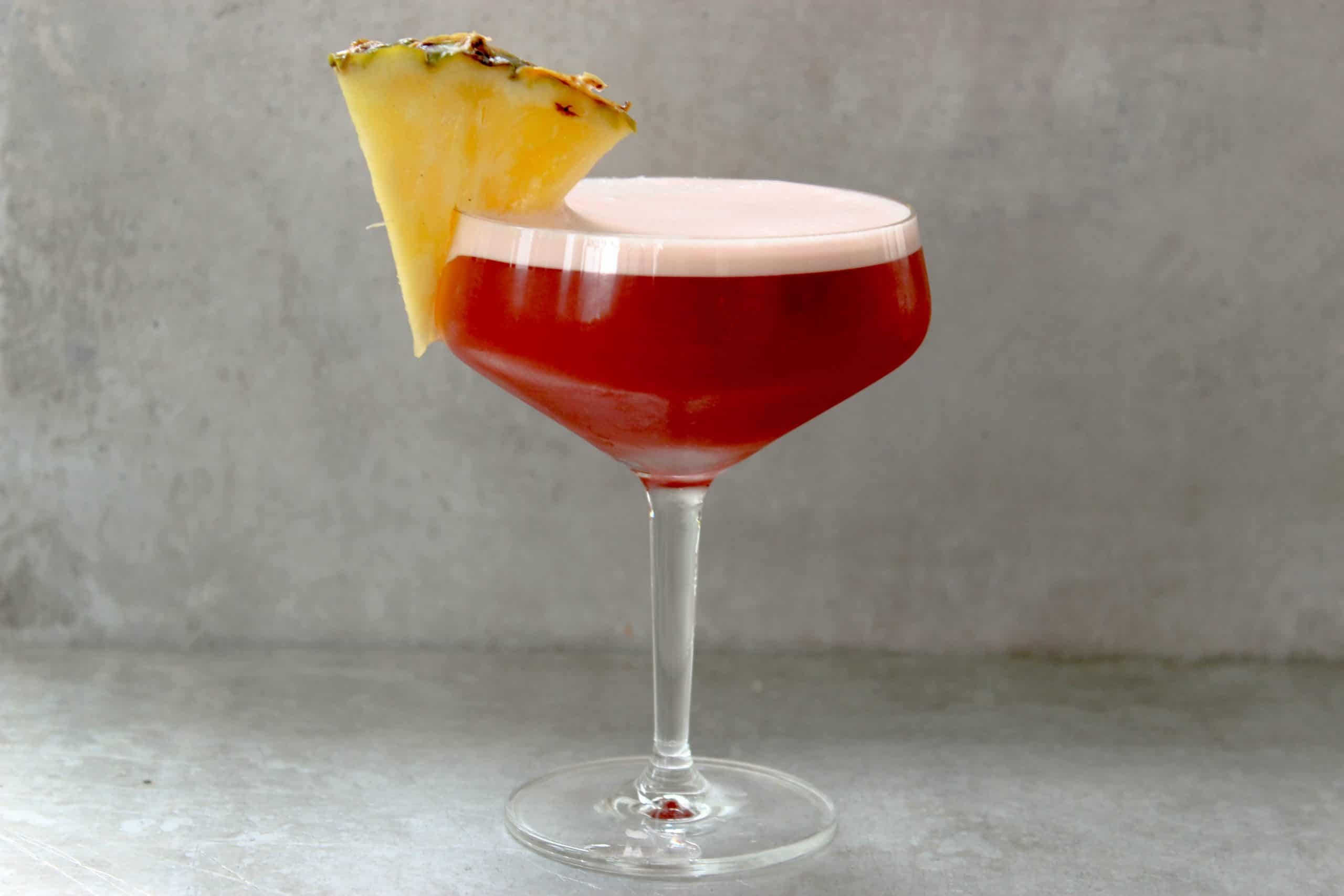 1. In a shaker add rum, Campari, vermouth, pineapple juice, lemon juice and egg white