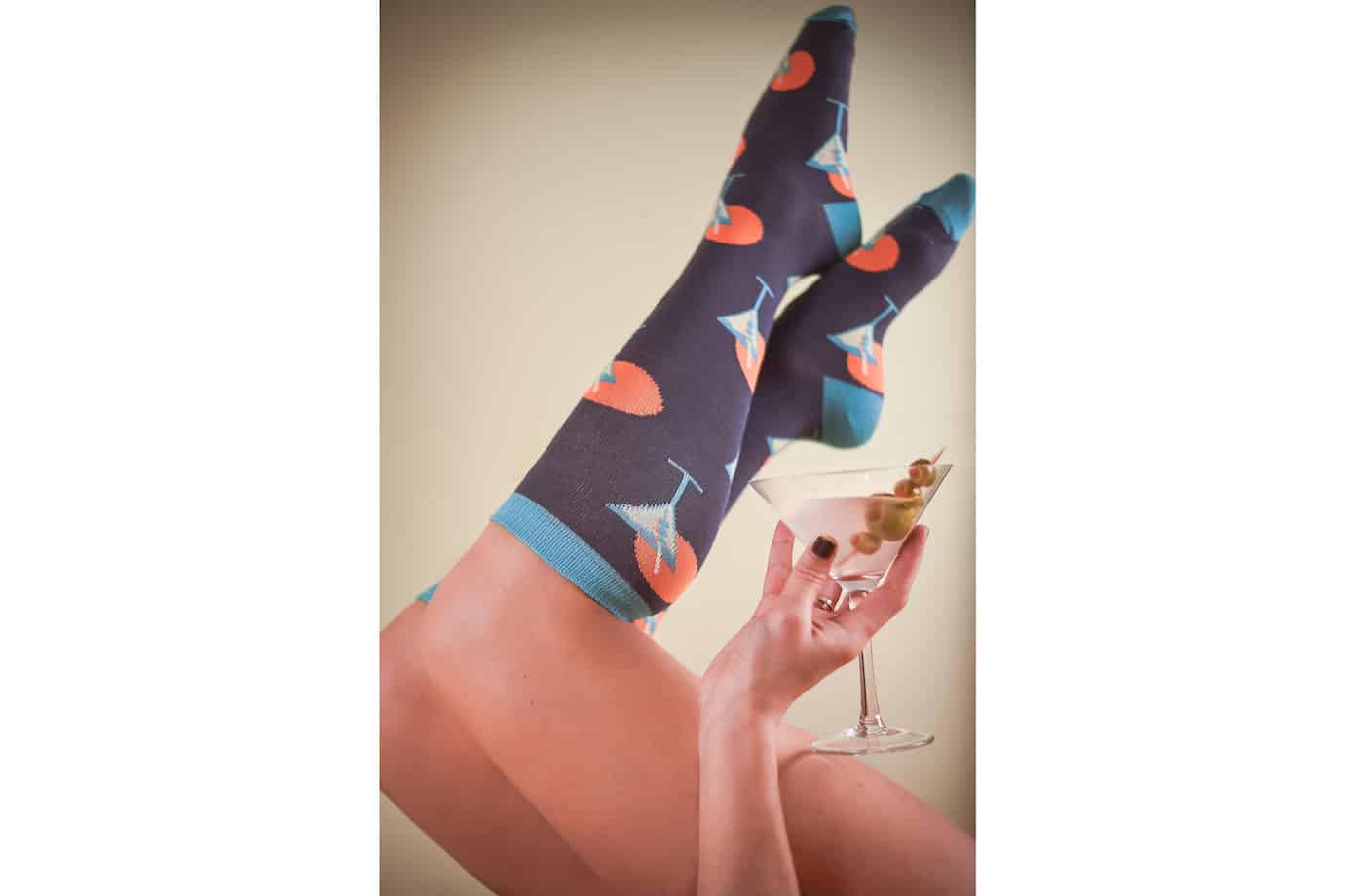I was lucky enough to receive a pair of the Shakin’ la Vida Loca to pair with a Beautiful Booze Cocktail. It just so happens that they are a perfect accompanying fashion statement to round out this boozy week. Today I am pairing these martini socks with a classic dirty martini. What’s better than socks that match your cocktail?