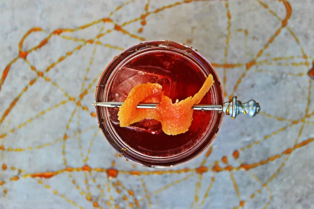 This recipe draws from my southern roots. The bourbon and sorghum syrup really tip this recipe into southern territory. I love sorghum syrup in this because it blends with the Campari in a magical way without over powering the drink. Sorghum is like a southern molasses that is made from the grassy stalks of the sorghum plant. My great-grandmother made this stuff and always slathered it on her homemade buttermilk biscuits for breakfast. So, you know if it used as a condiment on biscuits it is going to be amazing in your cocktail and in this Southern Negroni today. Italian meets southern in this wonderful variation of the Negroni.