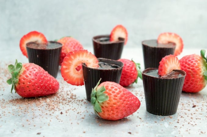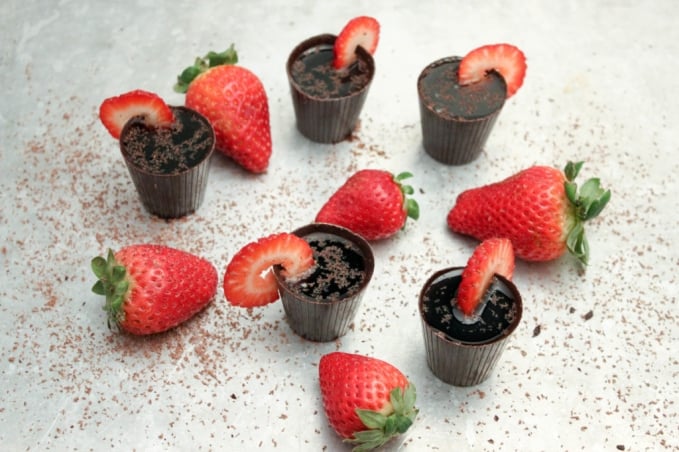 - Divide mixture into 5 chocolate shot glasses