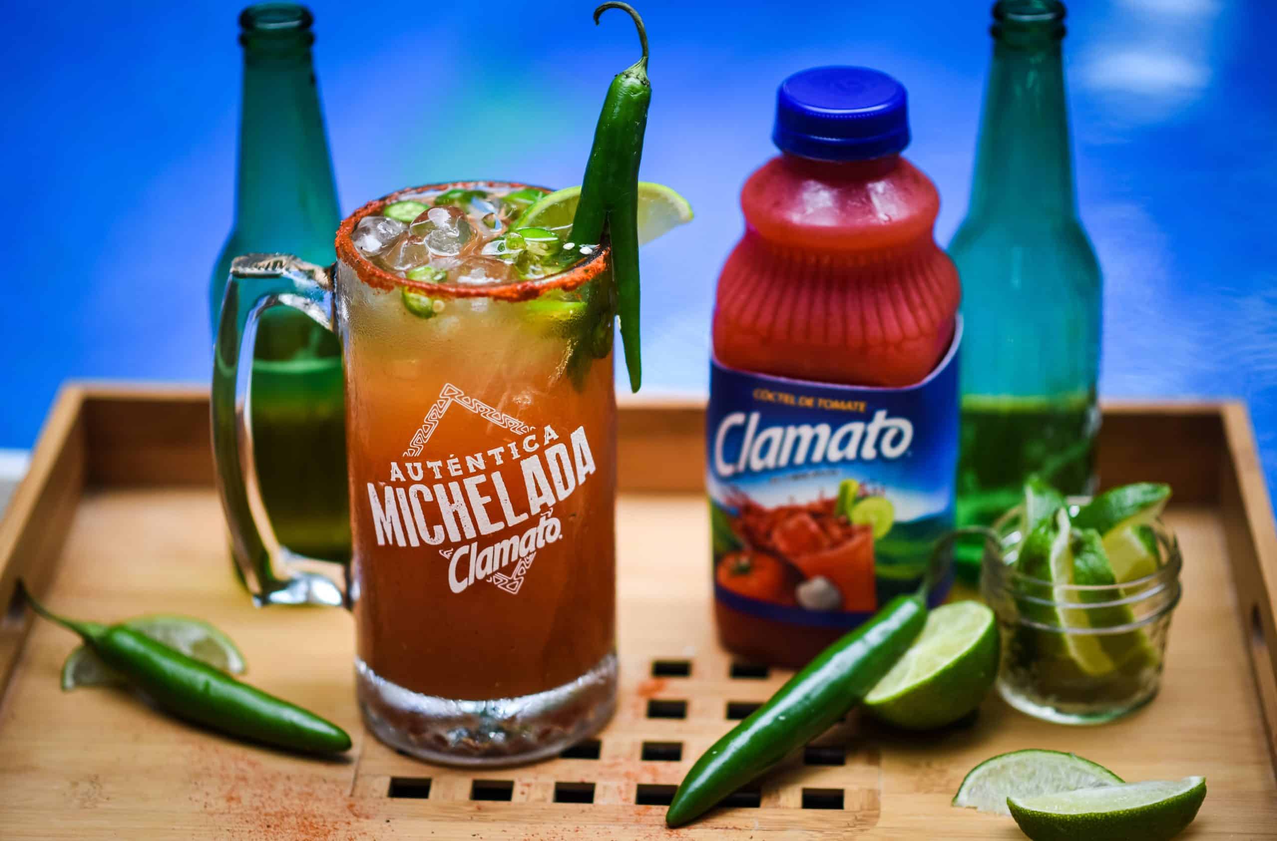 After spending so much time in Mexico I often get cravings for delicious foods and drinks I have enjoyed there so when I see events such as National Michelada Day pop up on my calendar I get really excited. I got ahead of myself and made this Spicy Serrano Michelada with Clamato juice and all things Mexican.