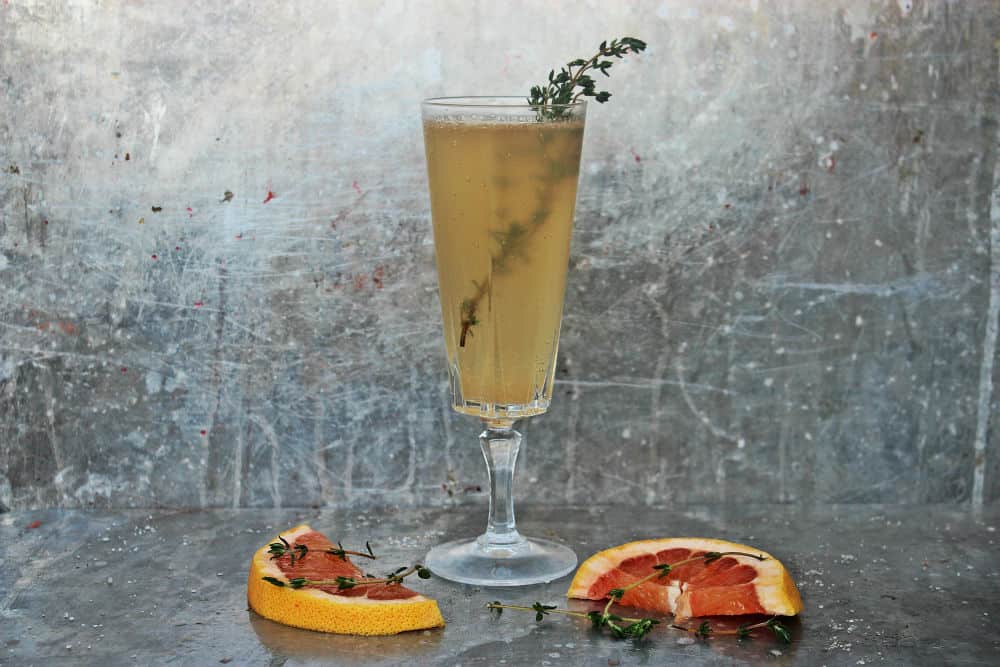 It is also pretty low alcohol so it is perfect for day drinking or an afternoon wind down. The thyme sprig adds a small amount of herbal flavor to the drink and makes it look so fancy. In a hurry you could purchase grapefruit juice and use that to make this drink. So, you could have a beautiful drink in 1, 2, 3 and your guests will be so impressed. St. Germain they will say, very intriguing and exotic especially if you set out the bottle. The bottle itself is so so beautiful but the booze inside is the real gem. Bring some sparkle to your life with this easy to make St. Germain Sparkler. Transport yourself to France and drink it up! Sante!