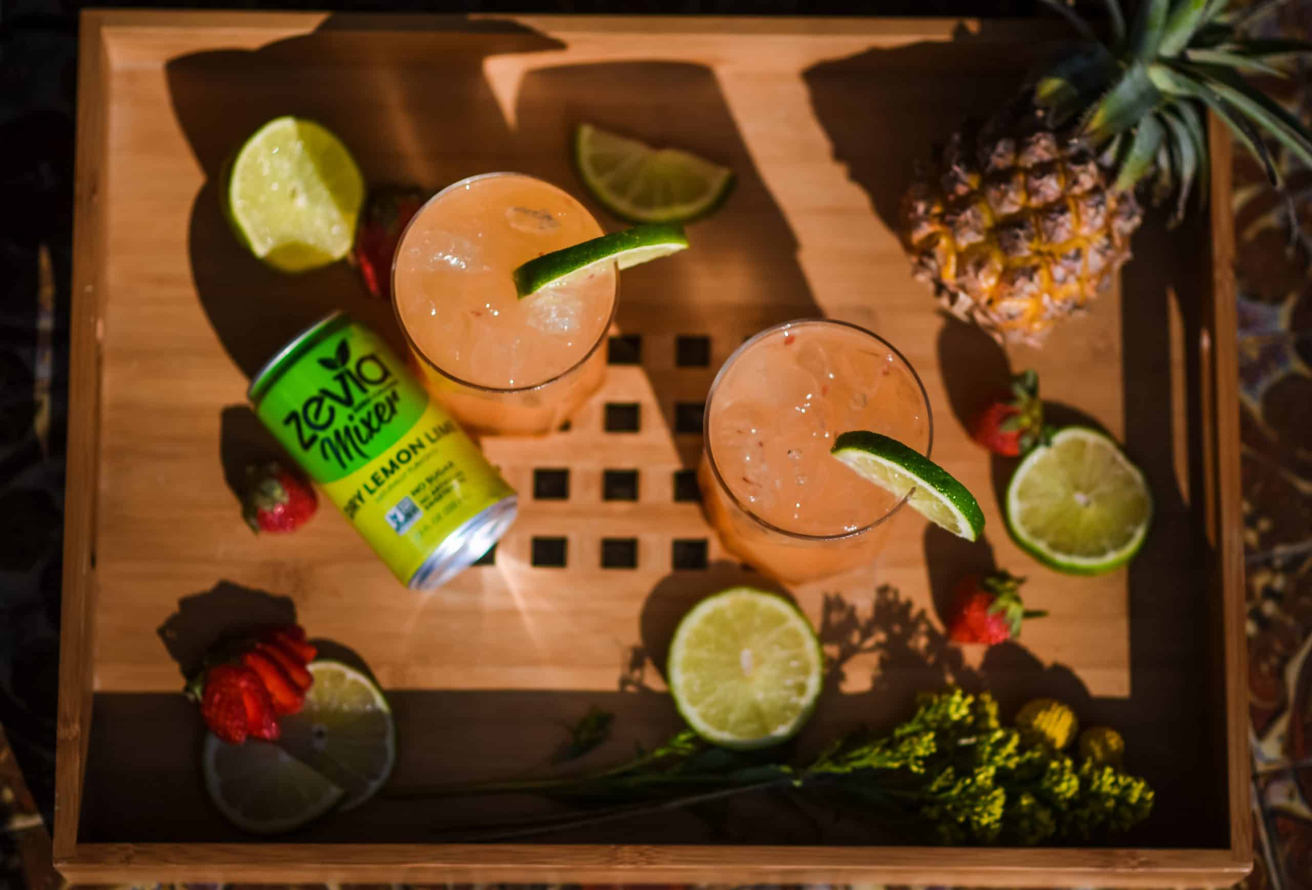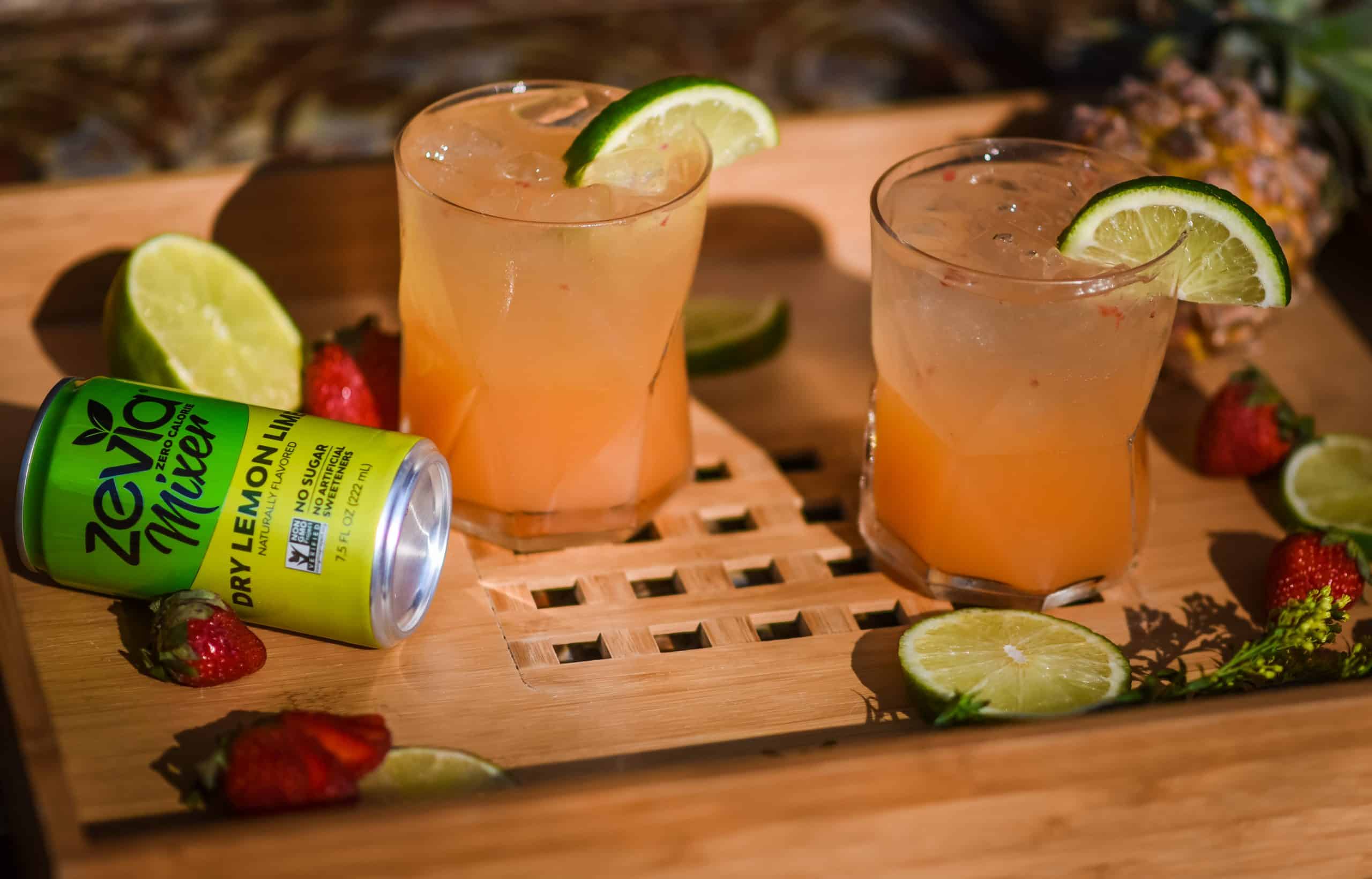 As the warmer months roll in I am already thinking of a tropical vacation so I created this Tropical Cooler cocktail to take off the edge. With all the natural sugars from the strawberries and pineapple juice I wanted something that would balance the cocktail so I used the Zevia Dry Lemon Lime, which is made without any artificial sweeteners or sugars. This cocktail is the perfect tropical escape with delicious white Caribbean rum and fresh fruit juices.