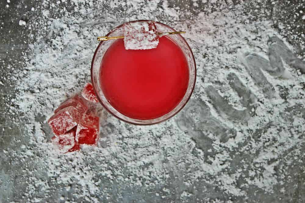 The confection is used as a garnish in this cocktail but the flavor of the martini tastes very similar to the confection. I used a hibiscus lavender syrup in this cocktail but you could use a plain simple syrup to add some sweetness. Make Today sweet with the Turkish Delight Martini!