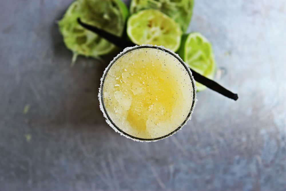 This drink is super easy to make you just throw everything in the blender and serve. I like to serve these fancy treats at a party because of the one step preparation. Also the combination of salt and vanilla bean rimmed on the glass is amazing! It really adds flavor and spark to the drink. If you feel like your week is way too vanilla you need to take it up a notch with this vanilla bean margarita.