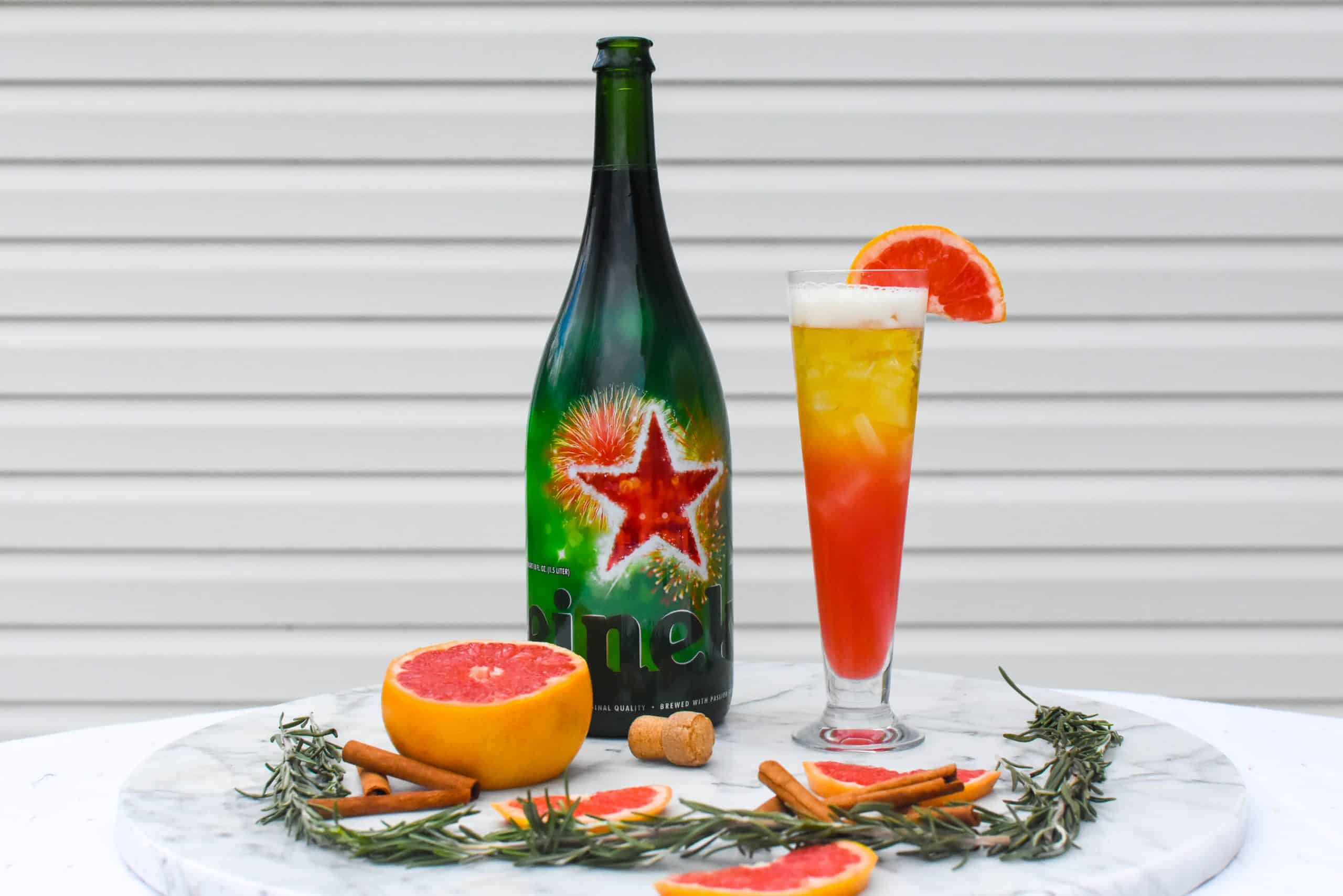 While visiting family for the holidays I was shopping at Walmart and in the alcohol section this giant magnum of Heineken caught my eye and I thought it would be great for a cocktail shoot. I have made a few beer cocktails in the past and found a good pale lager is perfect to add a little depth to the cocktail without overpowering the other flavors.
